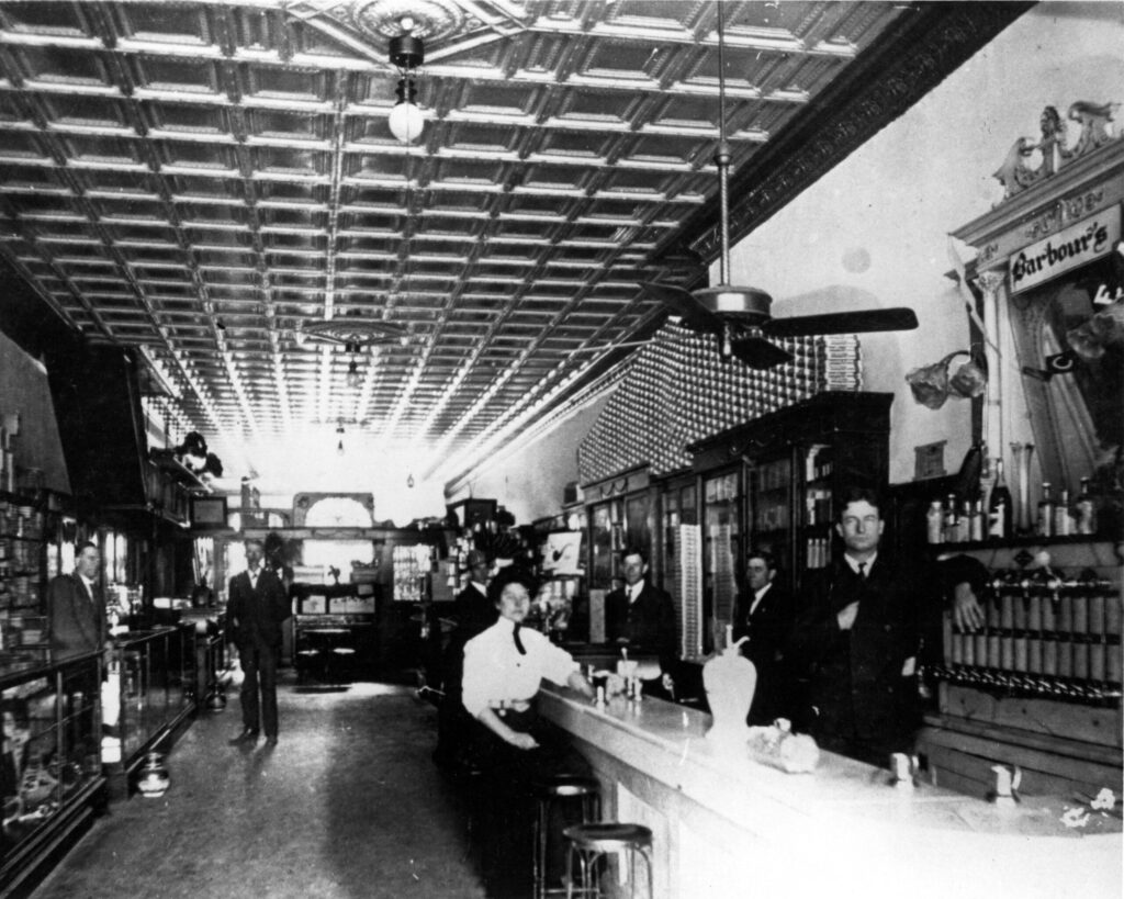 Barbour’s Drug, interior. Norman, Oklahoma. Norman Transcript, donated by Jeanette Barbour., Undated