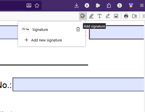 At the upper-right side of the application is the “Add Signature” button. When you click it, you can create a digital signature.